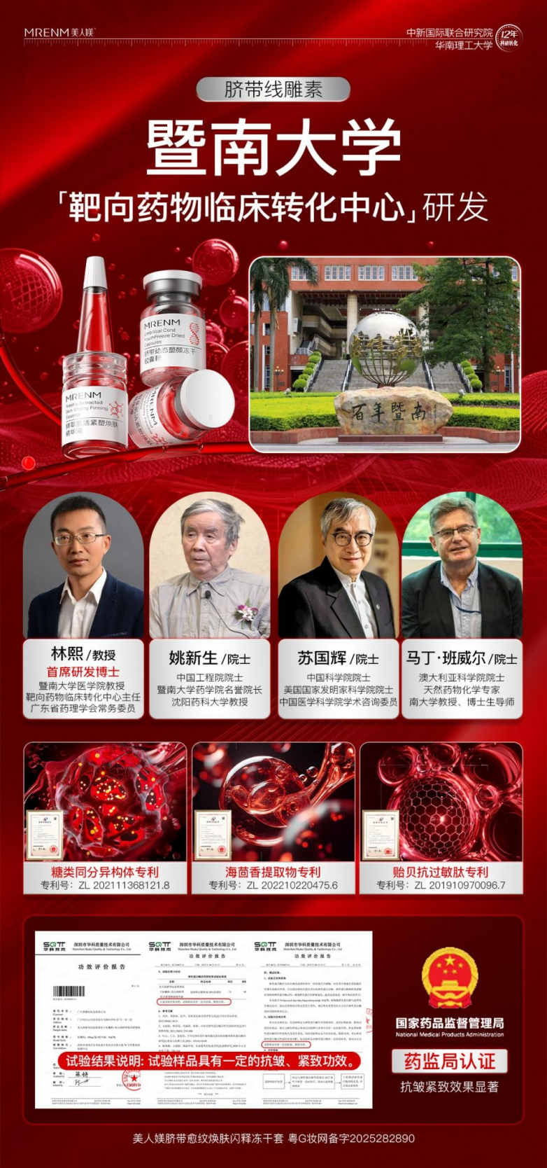 面对肌肤的衰老挑战,美人媄重磅推出脐带愈纹焕肤闪释冻干套,以尖端科技与珍稀成分,为抗衰领域带来突破性解决方案。这款产品的背后,是美人媄联合华南理工大学苏健裕教授团队及中新国际联合研究院的强强联手,两大科研机构凭借深厚的学术底蕴与前沿的研发能力,专研出高效紧致抗皱配方,确保产品的科学性与有效性。